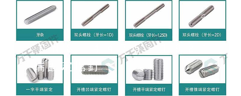 1.開槽錐端緊定螺釘2.開槽平端緊定螺釘3.開槽凹端緊定螺釘4.開槽長圓柱端緊定螺釘5.內六角平端緊定螺釘6.內六角錐端緊定螺釘7.內六角圓柱端緊定螺釘8.內六角凹端緊定螺釘9.方頭長圓柱球面端緊定螺釘10.方頭長圓柱端緊定螺