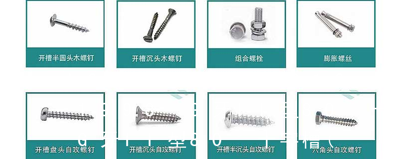 1、Flat:平頭 (鎖入后,頂部與工作件齊平)2、Oval:色拉頭、O頭、半沉頭 3、Round:圓頭 4、Pan:圓扁頭 5、Truss:大圓扁頭 6、Hex:六角頭 A-5:Finish Code/外觀處理。公制自攻螺絲 :于品名后方直接標(biāo)示 Tapp 主要分類包括普通螺絲、機(jī)螺絲、自攻螺絲和膨脹螺絲三種。 有頭螺釘Cap screw 過去限于全牙的扣件。 六角頭螺釘Hex cap screw與大六角螺栓Hex bolt 顧名思義為頭部為六角型的外螺紋扣件,設(shè)計為使用扳手轉(zhuǎn)動。依照ASME B18.2.1標(biāo)準(zhǔn),六